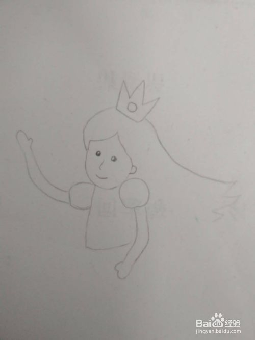 在身体的两侧画出两只手臂,并把裙子的泡泡袖一并画出来