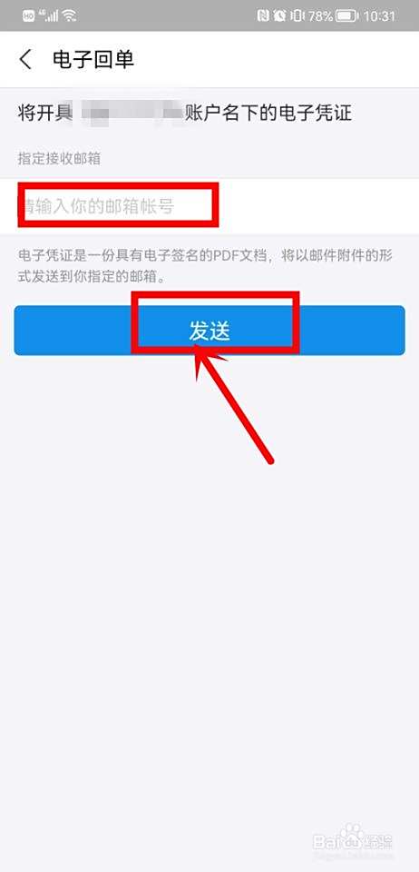 将开具电子凭证,输入你的邮箱账户,点击发送