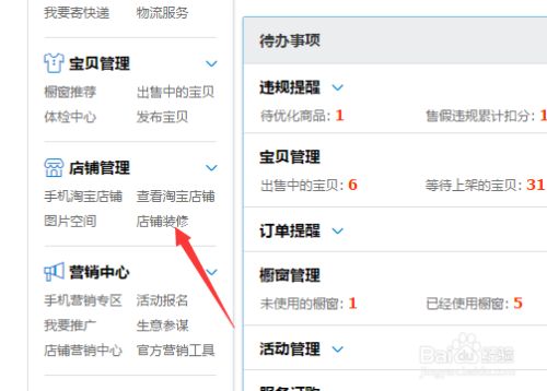 在左侧的大分类点击“店铺管理”中的“店铺装修”