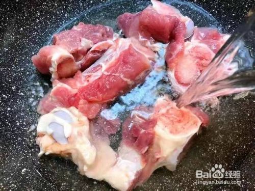 浸泡好的棒骨冲洗干净放入锅里,倒入适量清水,水量盖过食材,开大火把水烧开。