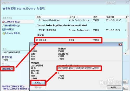 搜索插件的讯息:注册表工具栏→编辑→查找→黏贴ID:{92780B25-18CC-41C8-B9BE-3C9C571A8263} 回车搜索。