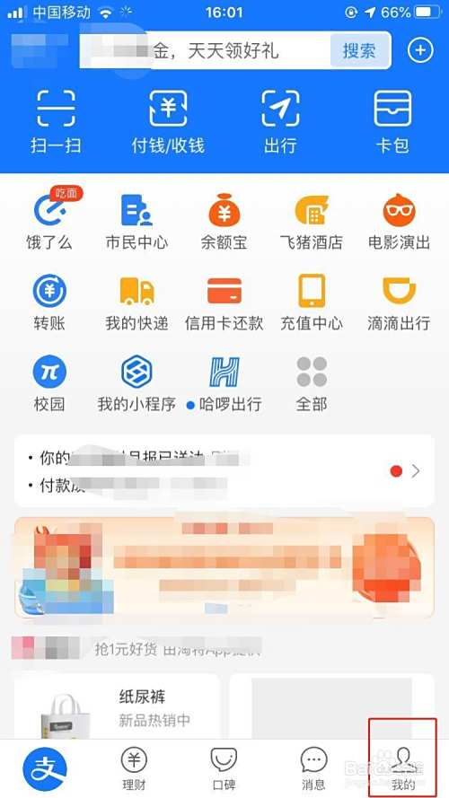 打开手机支付宝,点击我的进入。