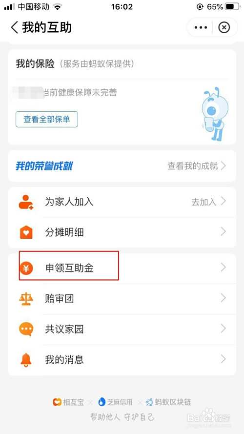 点击申领互助金。