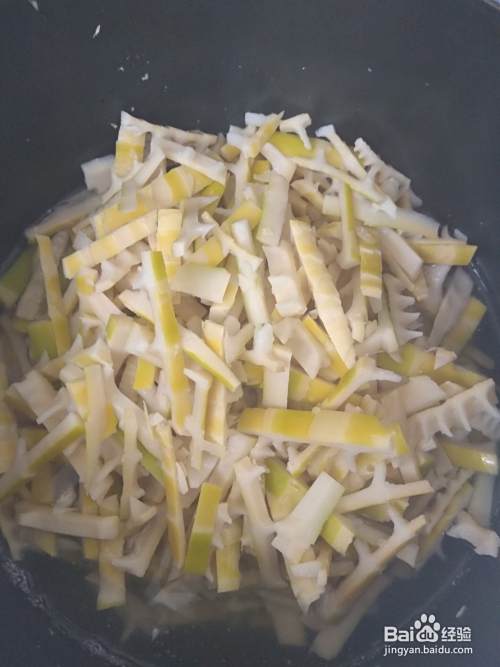 竹笋去皮后把竹笋切成细丝,如图所示。