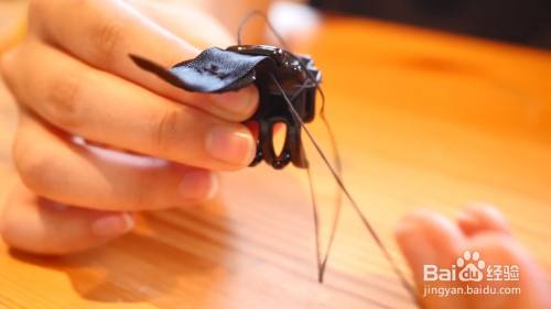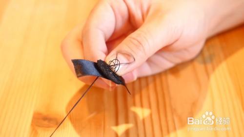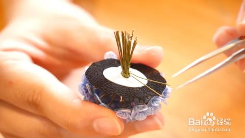 把毛毡圆片缝在缎带上面,并将它粘在发夹上面,如图所示