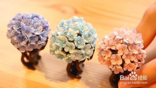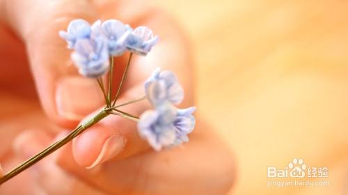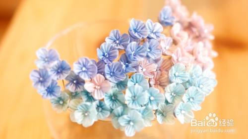 然后把做好的樱花花朵粘在金属丝上面,并将花朵缠绕成一束