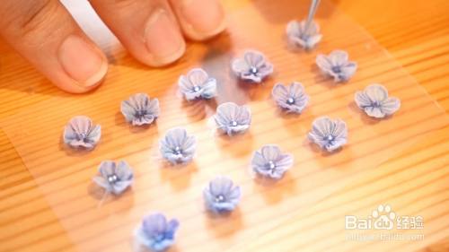 然后把樱花花朵粘在黏胶上面等待干燥