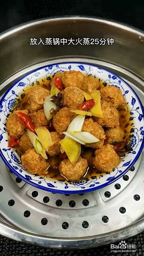 在丸子里倒入调好的酱汁,放入蒸锅中大火蒸分钟。