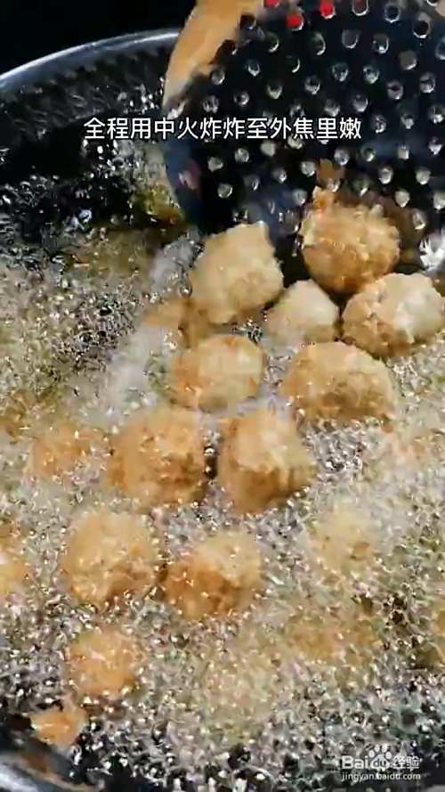 锅中烧油,油温六成热放入丸子,中火炸至外焦里嫩捞出。