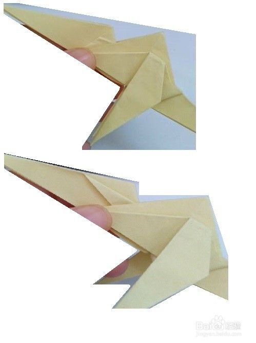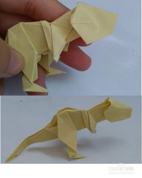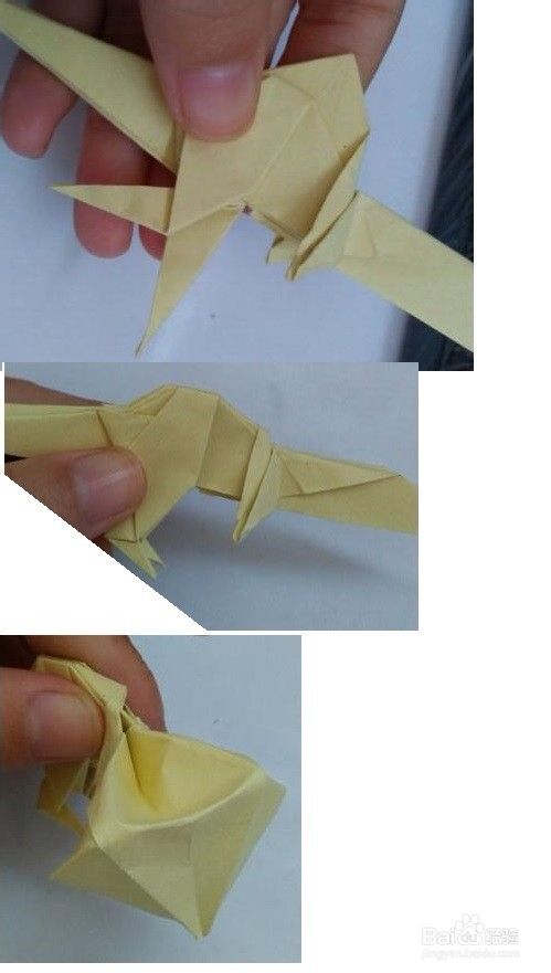 8另一侧按照上边的步骤同样操作,我们把前侧的恐龙腿垂直向后折。