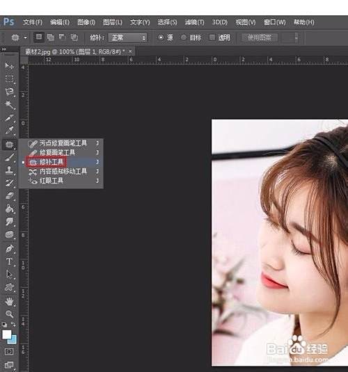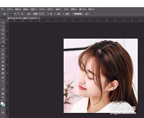 选中需要去掉的发卡部分,向相近发色处拖动,松开鼠标后,选中区域被填充上头发。