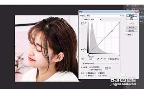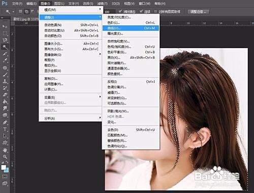 7选择菜单栏“图像--调整--曲线”,调整头发的颜色,使修的图更加自然。