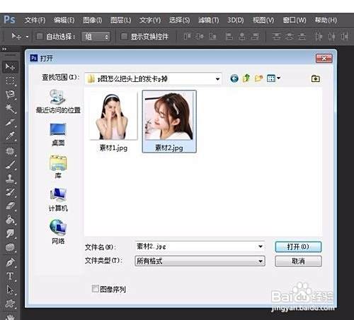 1按Ctrl+O,选择需要p掉发卡的图片。