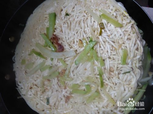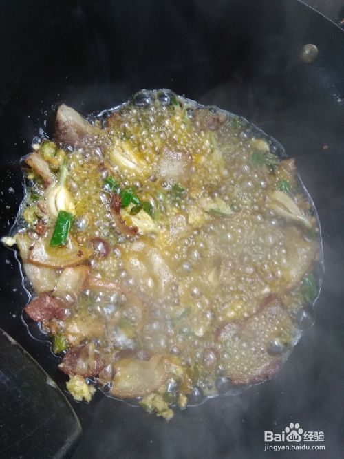猪肉在锅内慢慢地炸出的油越来越多,炼出油来这样蒸出来的面条更好吃,如图所示。