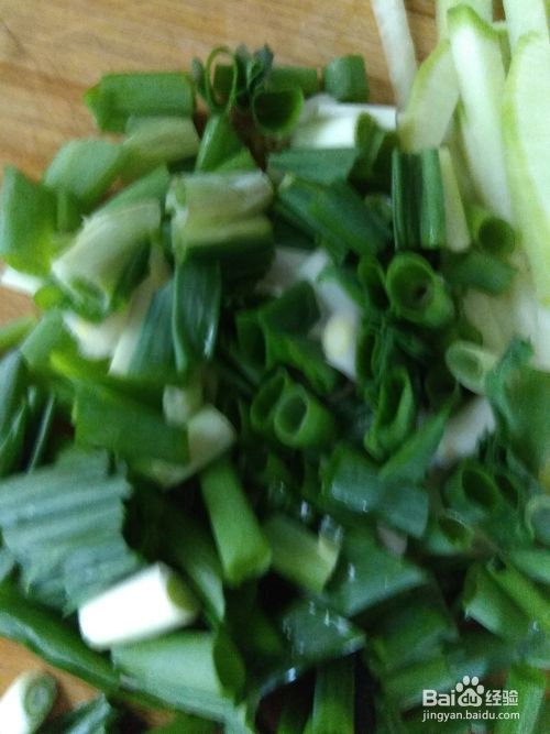 取适量的葱进行清洗干净后切成小段。如图所示。