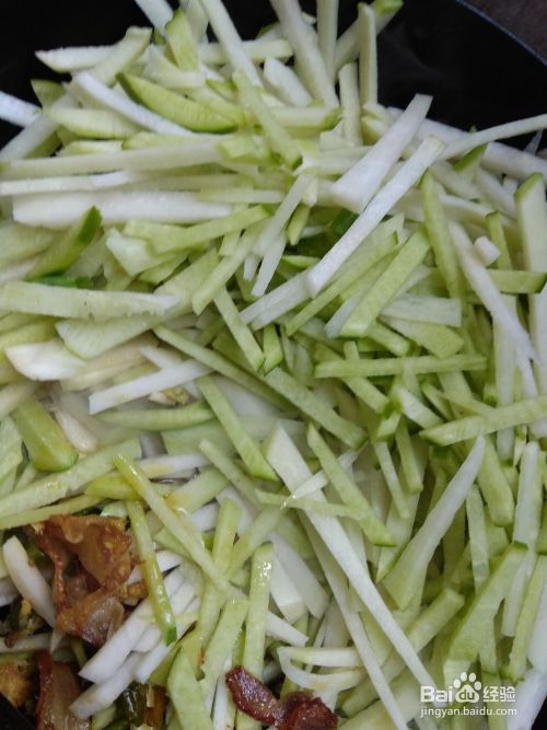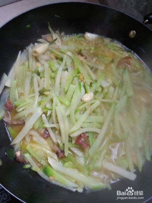 把萝卜和肉在一起进行翻炒并加入适量的食盐,并适量的加入些热水这样萝卜菜好熟,如图所示。