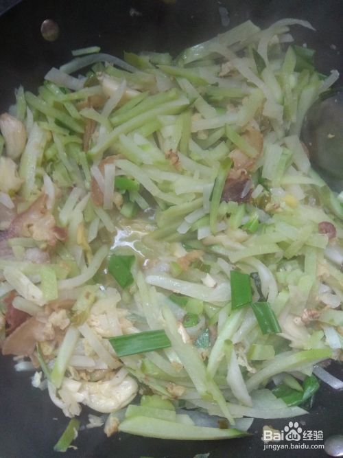 翻炒完毕后把萝卜丝倒入锅内开始炒萝卜菜,如图所示。