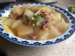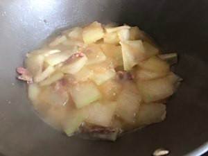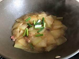 一定要烧透冬瓜烧透变软,火腿的鲜味也完全融入冬瓜,最后撒葱段
