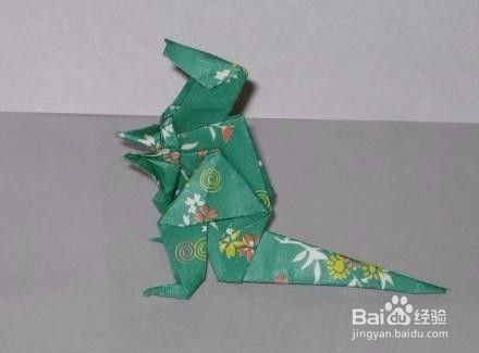 .这个时候就是将这个手工折纸恐龙的足部分别向内进行压折,这样手工折纸恐龙的足部就制作出来了,可以看到这个手工折纸恐龙的制作还是非常简单有趣的,最后再经过简单的整型之后,就是美工刀下方的样式啦。你也可以选择自己喜欢颜色的纸张,这样制作出来的手工折纸恐龙可能会更加的漂亮,一切都可以自己尝试哦!