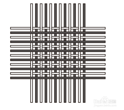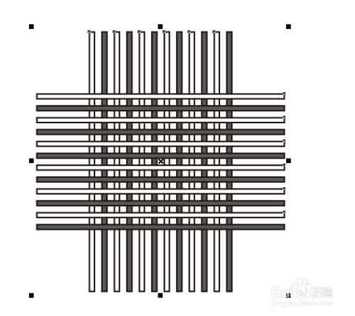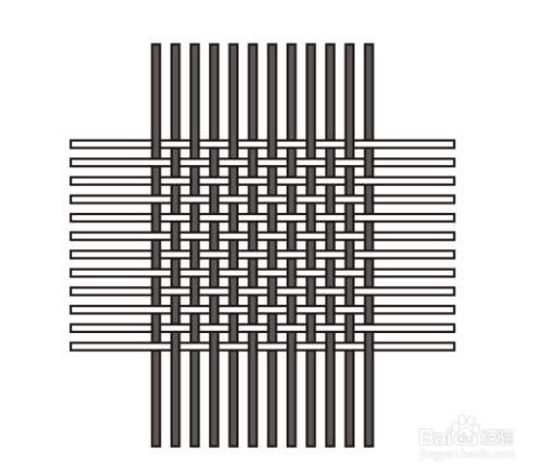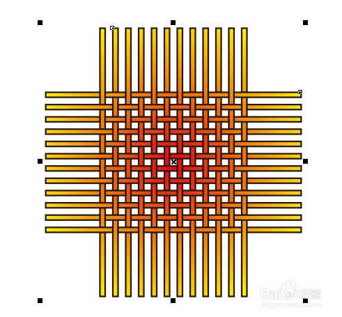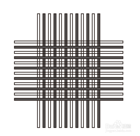 选中竖白矩形和横白矩形,然后按修剪按钮,同样,选中竖黑矩形和横黑矩形,然后按修剪按钮(注意顺序,先竖,后横)最后得到编织状的图形(如果不需要填充渐变色,就到这里为止了)
