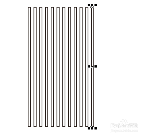首先打开cdr软件,用矩形工具建立一个较长的矩形,然后选中,移动复制到右边相应距离(按住第一个矩形,向右移动然后按鼠标右键,即可得到得到第二个矩形),然后再制(ctrl+D)得到多个矩形