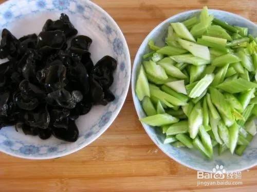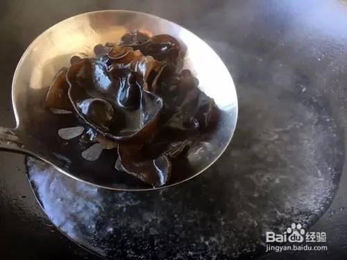 黑木耳放在温水中泡发,择好,放入沸水中焯2分钟,沥水备用。