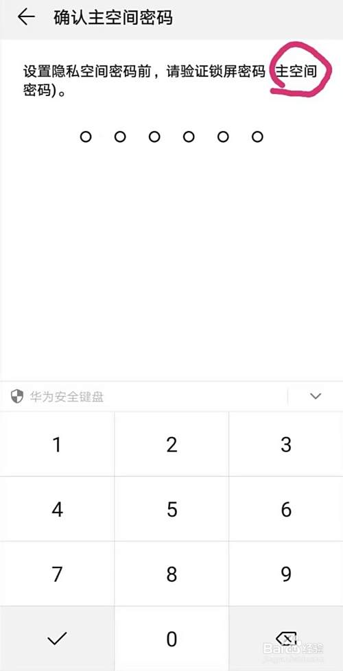 开启之后会出现密码输入的界面,此时输入的是主空间的密码,而不是私密空间的密码。
