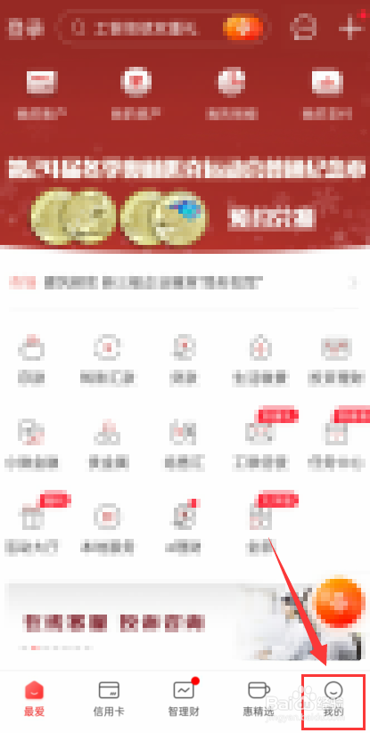 我们打开中国工商银行,进入最爱界面夏称,点击右下角我的。