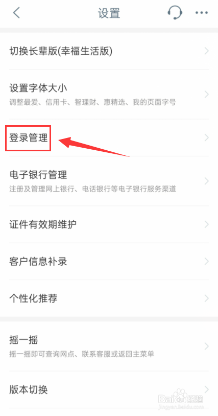 在设置界面,点击栏目中登录管理。