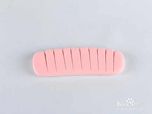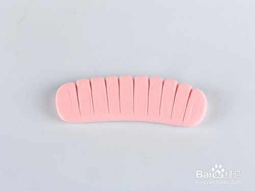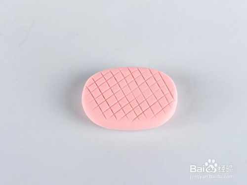 首先用粉色粘土做一个椭圆形压扁,如上图所示,要有一定厚度。