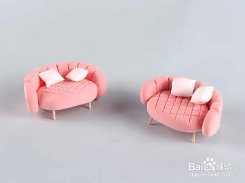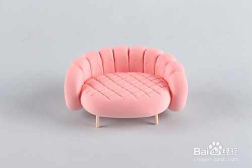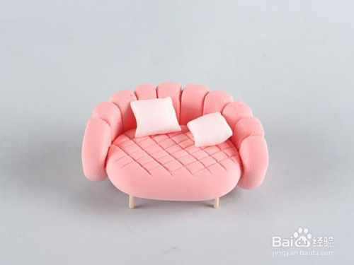 再用白色粘土做两个小抱枕放在上面,小沙发就做好了。