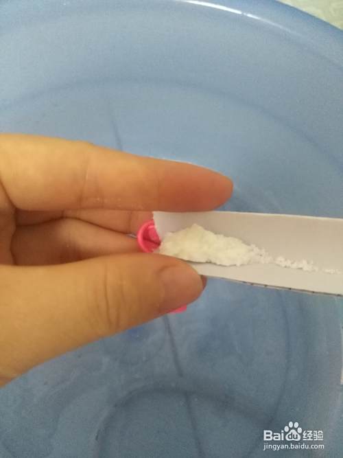 把小苏打粉装到气球里,因为气球口比较小,可以拿一张纸做成纸槽,把小苏打粉送到气球里。