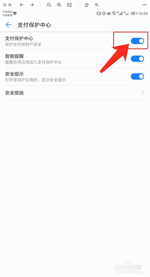 在【支付保护中心】中,打开【支付保护中心】开关,即开启了支付保护中心。