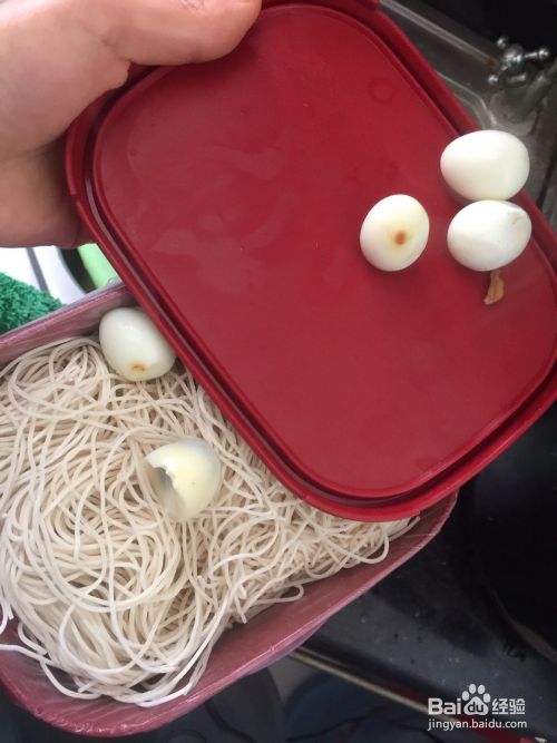 十颗新鲜的鹌鹑蛋提前煮熟了、准备好龙须面备用