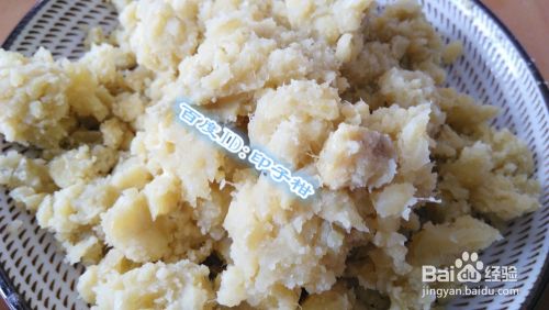 蒸熟后的红薯趁热用擀面杖弄成泥状,如果您买的红薯有很多粗纤维,建议将红薯泥过一下筛。