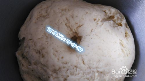 将放温的红薯泥加入面粉中并放入发酵粉,活成光滑的面团,并放在面盆中加盖发酵。