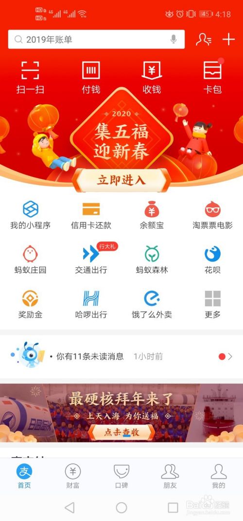 首先,打开手机里的支付宝app,进入首页。