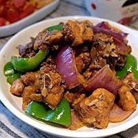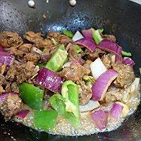 再放进青椒翻炒一小会儿,就可以出锅了;