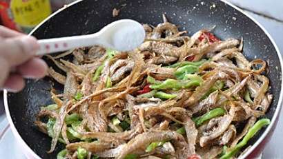 不会讲究的做菜,那就按照农家的做法来,用青红辣椒干炒“刨花鱼”。