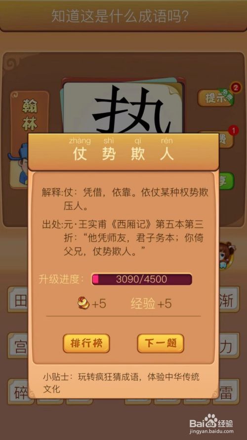 图片中有两个字,一个字特别小,一个字特别大,并且一个字的一个脚踩到另一个字的身上再欺负他,所以这个成语是仗势欺人,