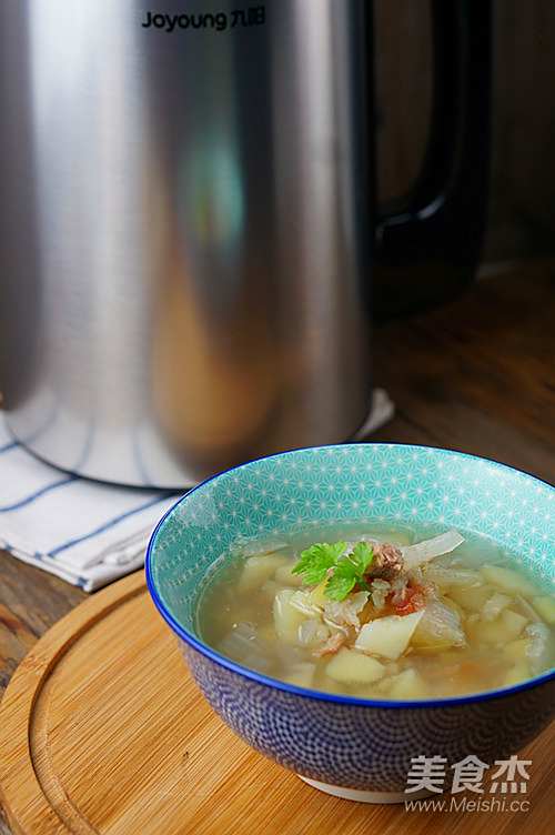 大姐的女儿上大学,天天叫着说在学校没什么东西吃。然后大姐给她办置了豆浆机及小的电煮锅。让她有时间自己弄点吃一下。大姐那天问我用豆浆机可以做什么,我说什么都可以,好比今天的这一款汤一样,用米粥的功能做出来带颗粒的时蔬汤,清新中带着满足感谢。