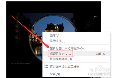 右键单击视频,点击下拉菜单中的“视频另存为”。注:由于浏览器品牌的不同,具体字样或许有所不同。