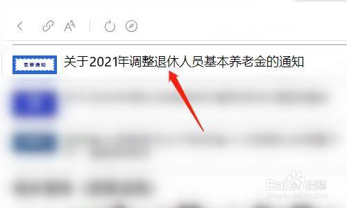 进入界面后,找到“关于2021年调整退休人员基本养老金的通知”,如下图所示。