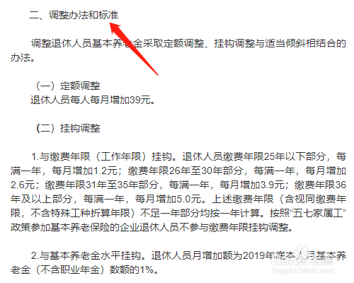 最后即可看到退休工资调整方法和标准,如下图所示。