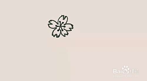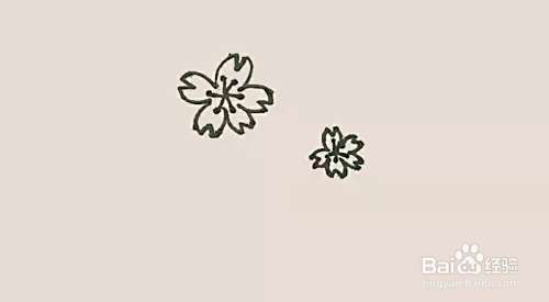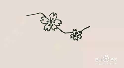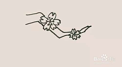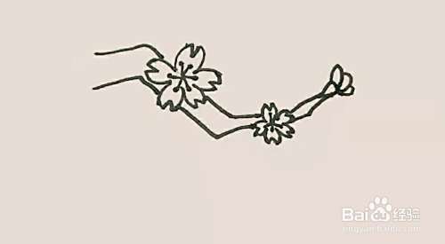 然后用一条折线将花朵串联起来,再画上同样的一条折线连接起来形成树枝。