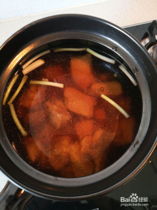 加水后,放入砂锅,加入姜、洋葱、葡萄酒、酱油。