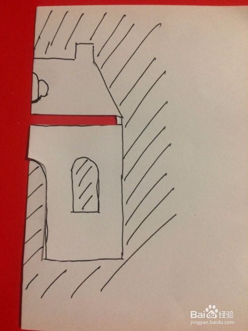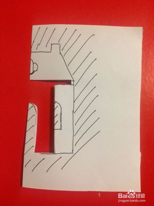接下来继续沿着房子的外面画线全部剪下来;最后把屋顶上的花样剪下来。
