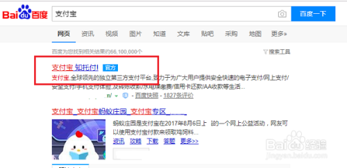 第一步我们首先需要知道支付宝注册时间需要在电脑上查看,百度搜索支付宝,进去官网,如下图所示: