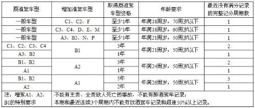 年龄:年满21周岁。身高:大型车辆要求身高1。55以上。户口:要在居住地(户口所在地,地级市范围)学习,不能在暂住地学习。原驾驶证是外地的,要转回原籍,在原籍学习。身体条件:无非是视力,色盲,什么的,一般人不用考虑都过得去。驾照要求:直接初领,或者任意驾照满1年。违法记录要求:1年内没有满12分记录因为和地域有关,只能在户口所在地学,而且是大型车辆。所以一些地区便宜,一般地区稍贵。