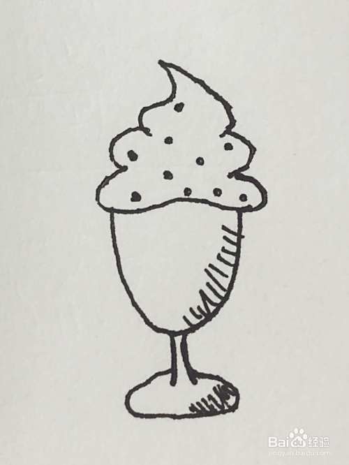 随后我们画出杯子上方沙冰的部分,它的形状就像普通的甜筒。